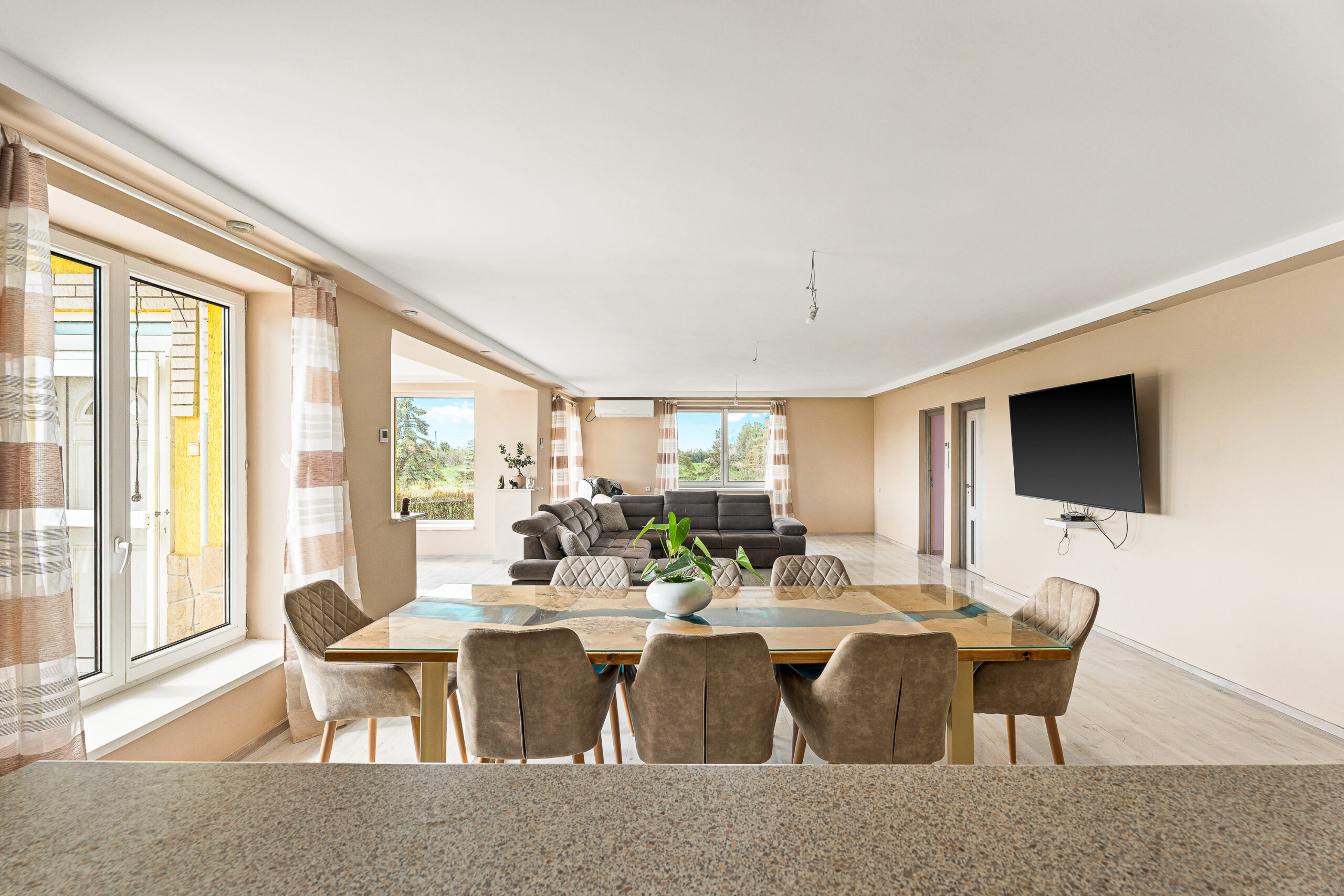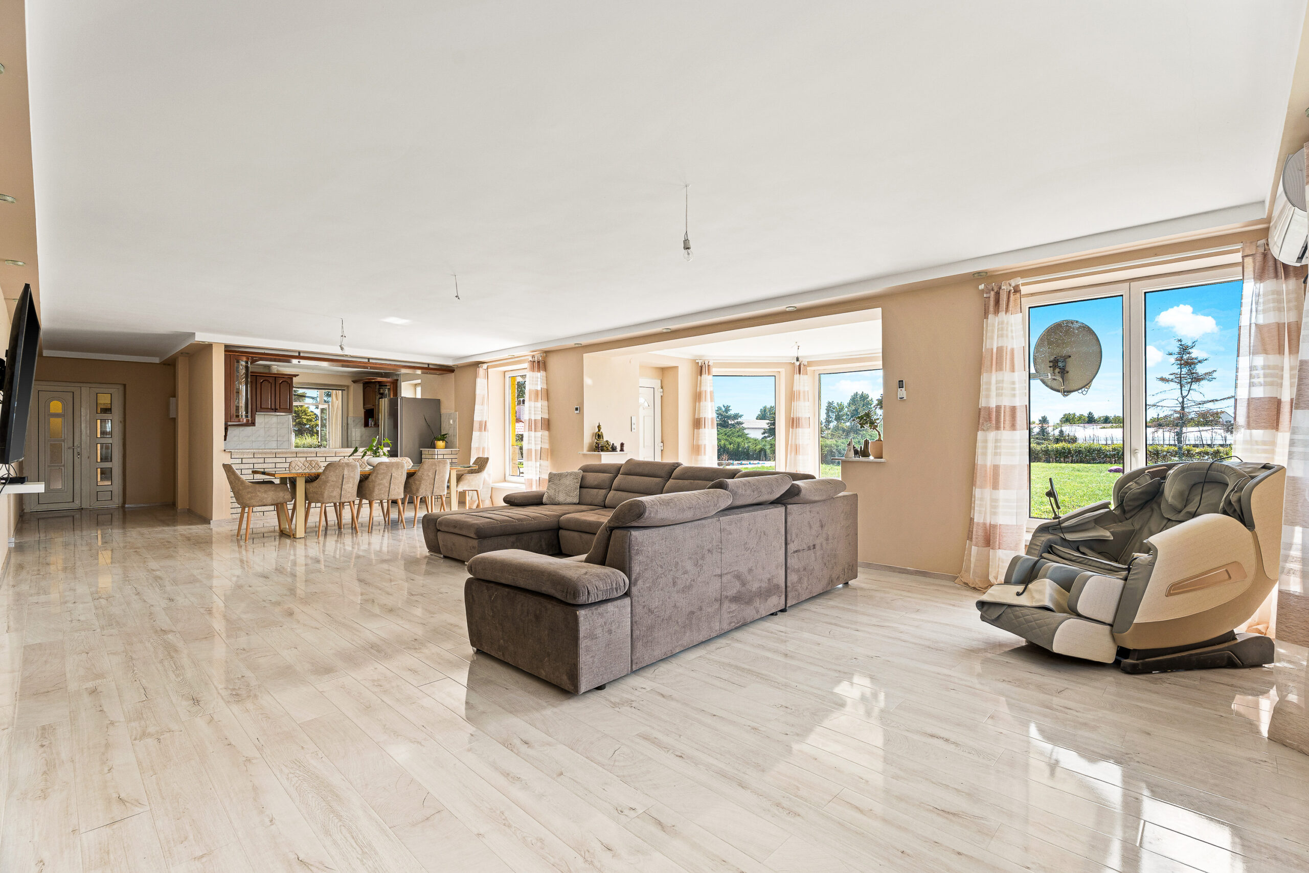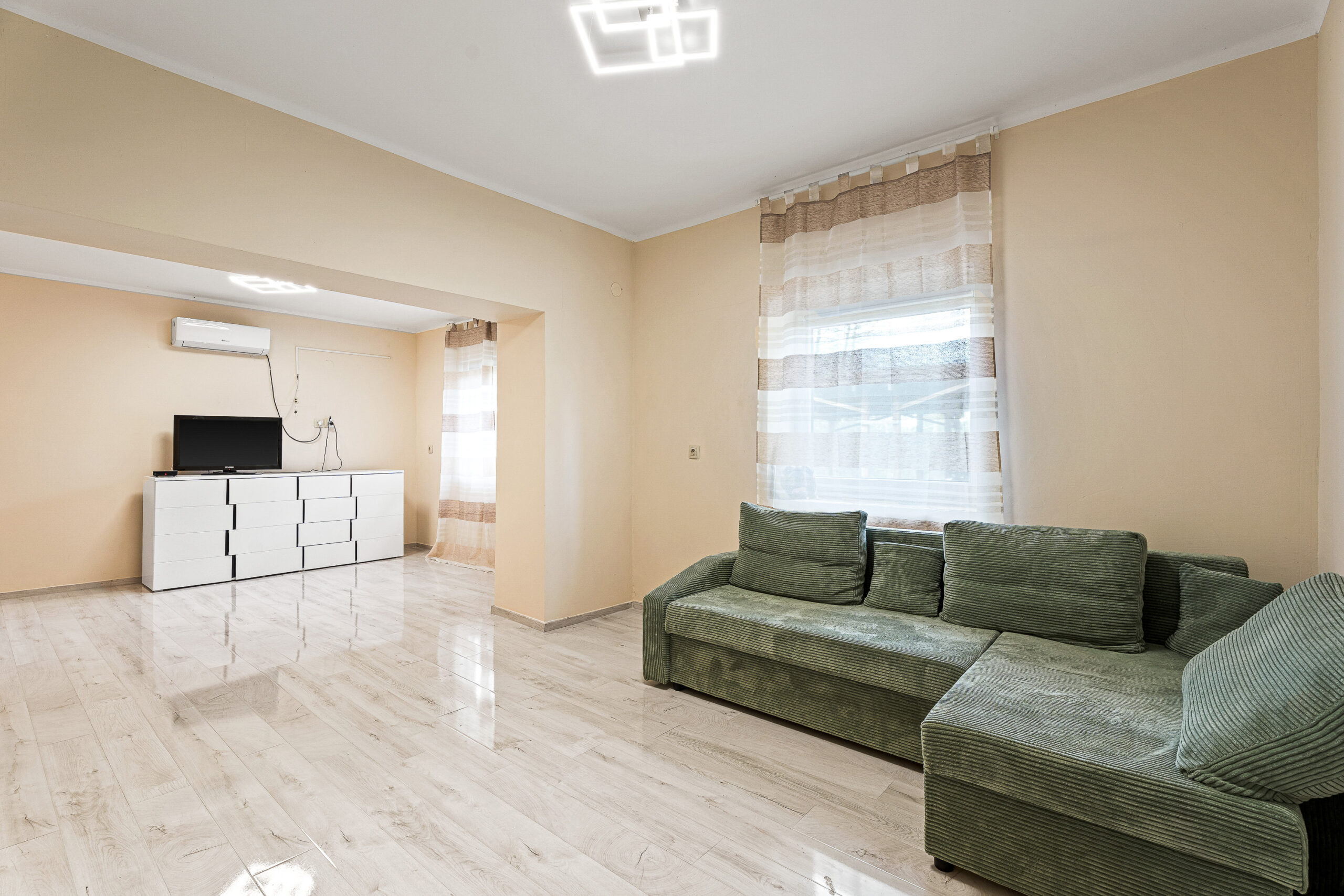 - 1 nagyméretű nappali, konyha, 2 szoba, 1 félszoba, 1 fürdő, WC,