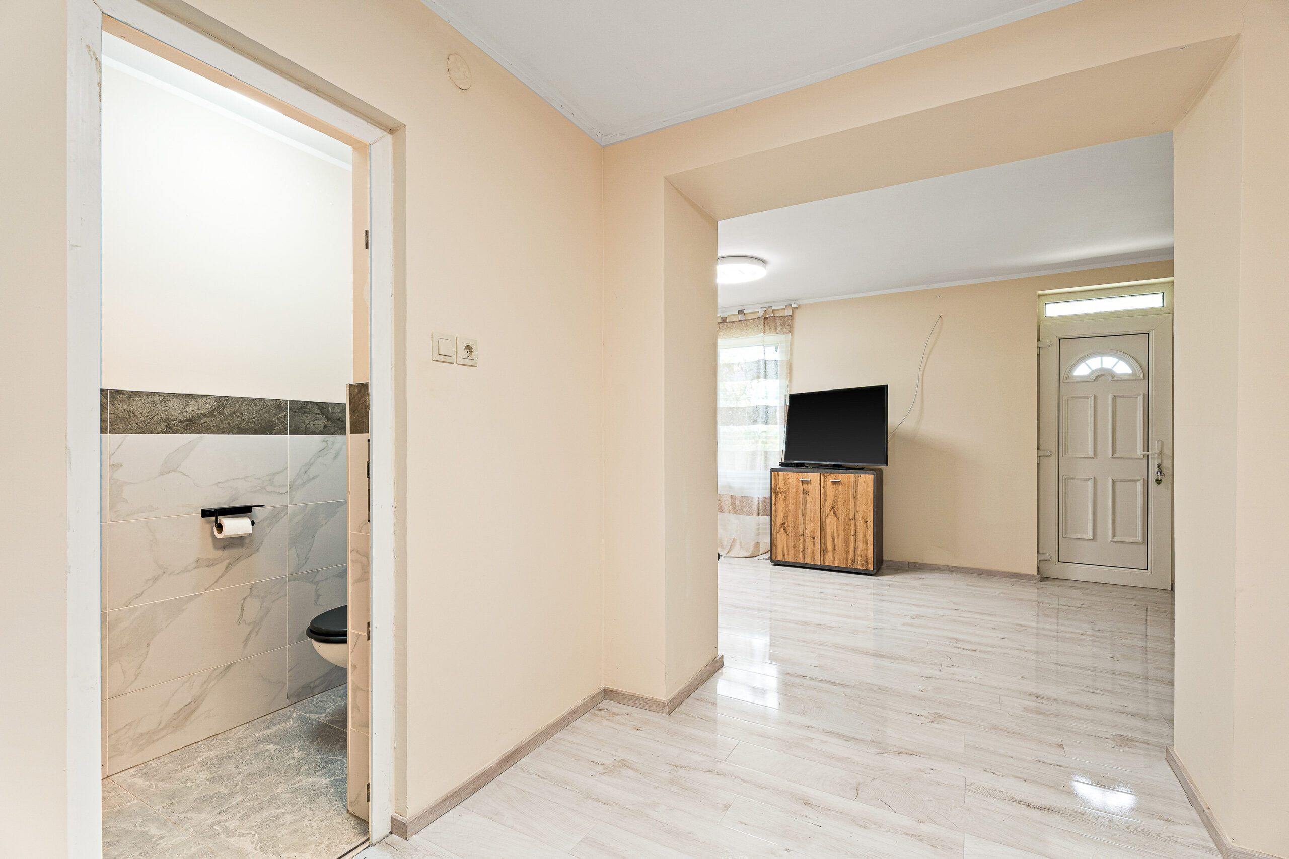 - 1 szoba, fürdő, WC, mosókonyha;