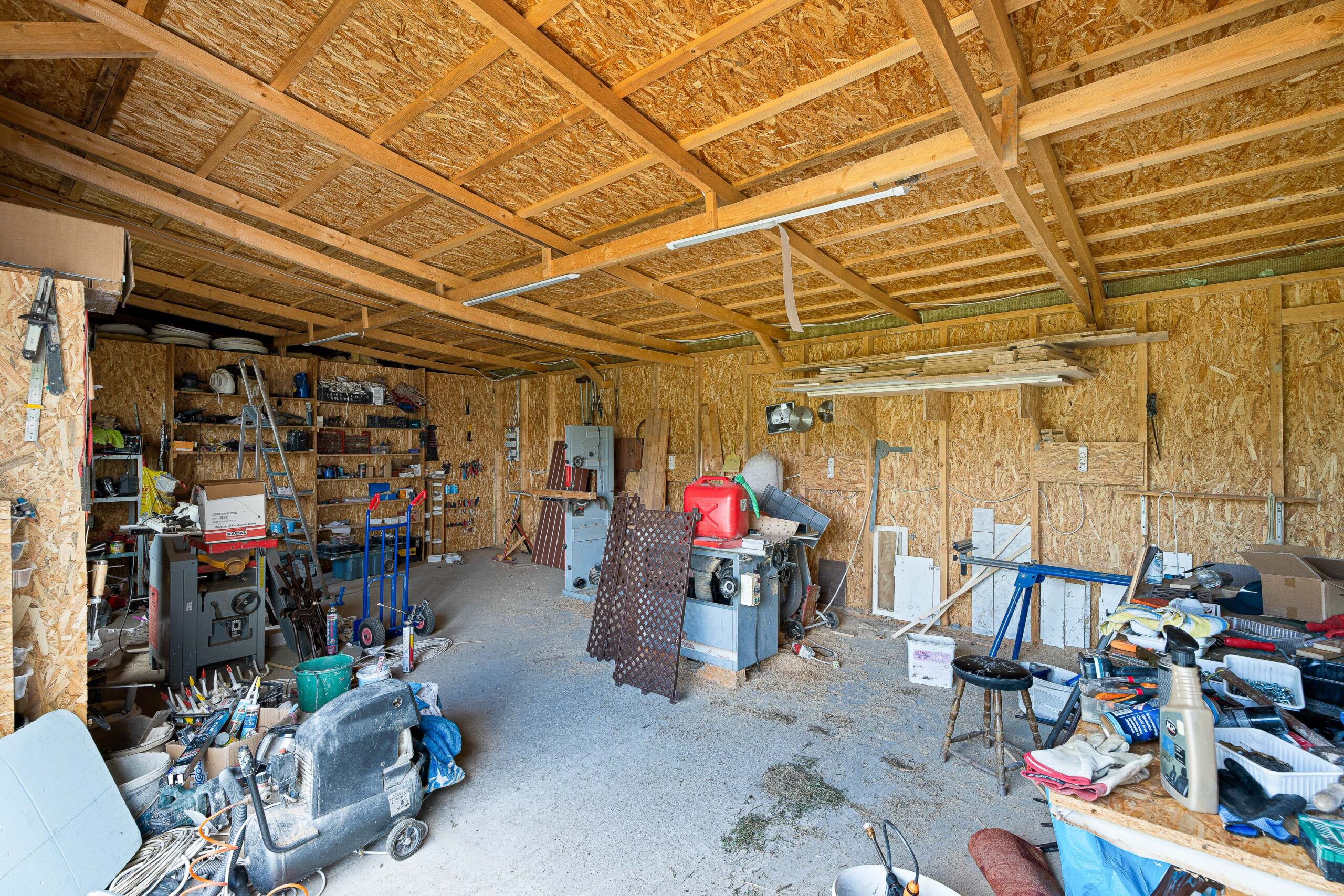 Van még egy 2024-ben befejezett könnyűszerkezetes 100m2-es gazdasági épület az alábbi felosztásban: