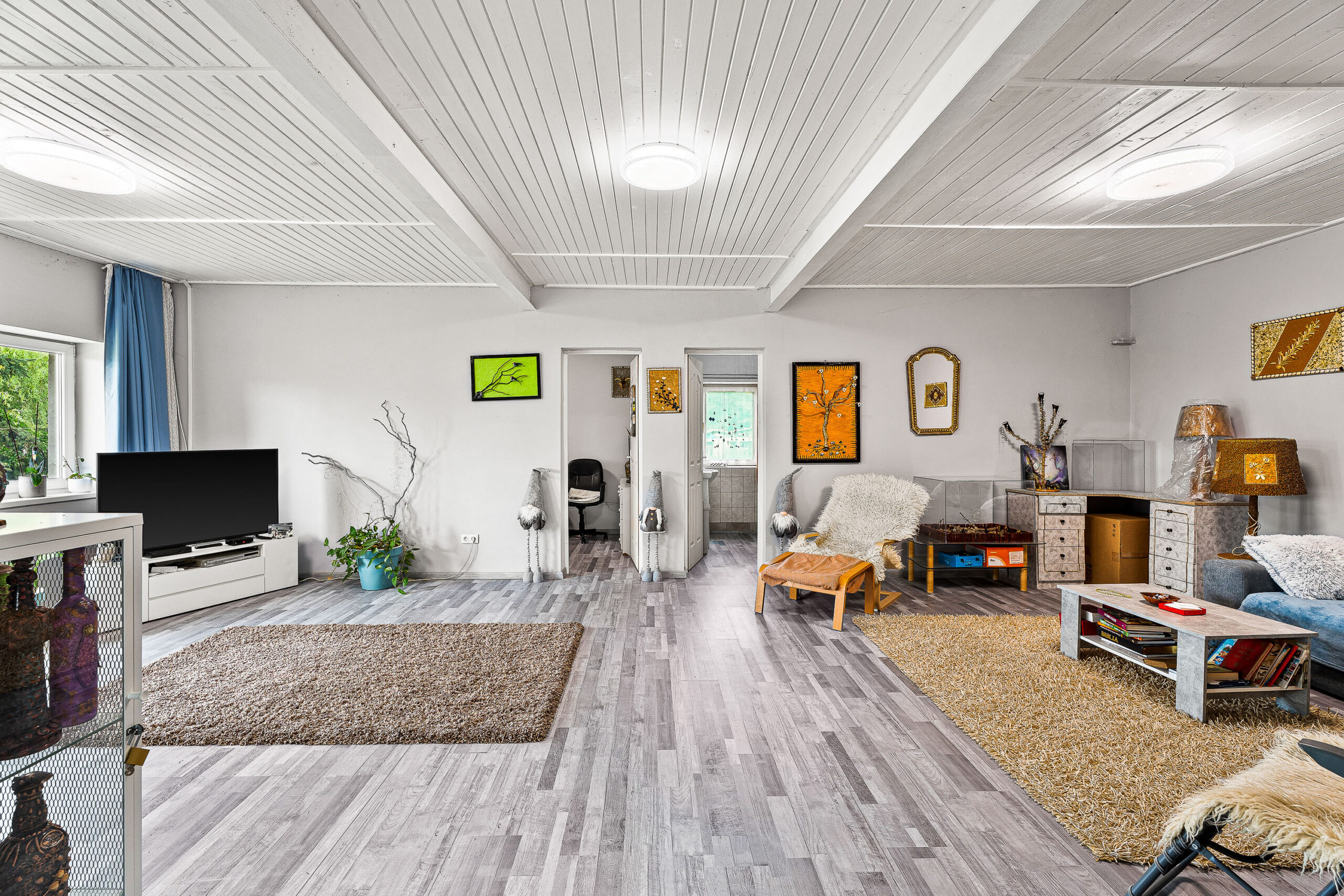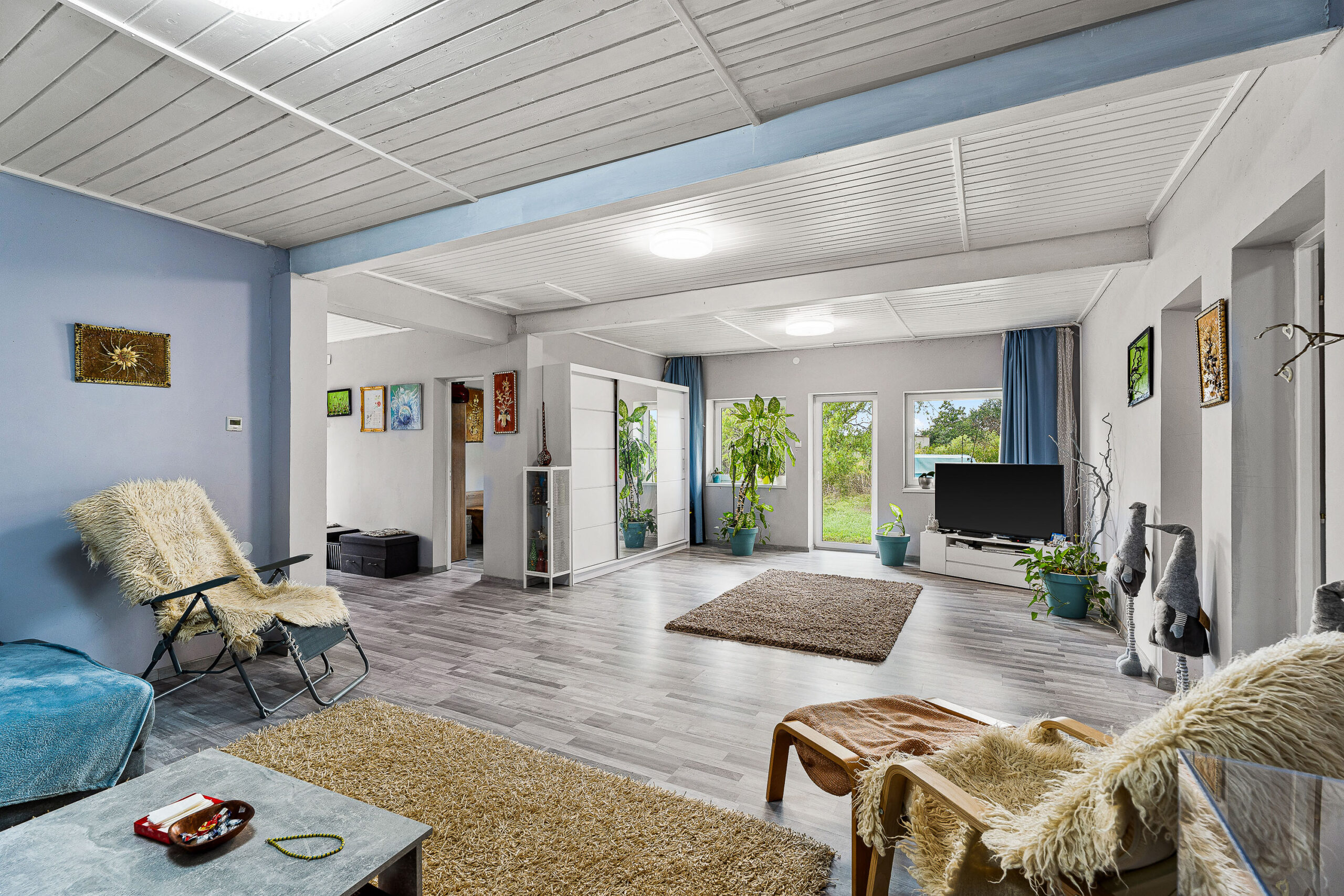 Kialakítását tekintve a főépületben 1 nagy közösségi térből (akár nappali is lehet belőle) nyíló 3 lakrész található az alábbi elosztásban: