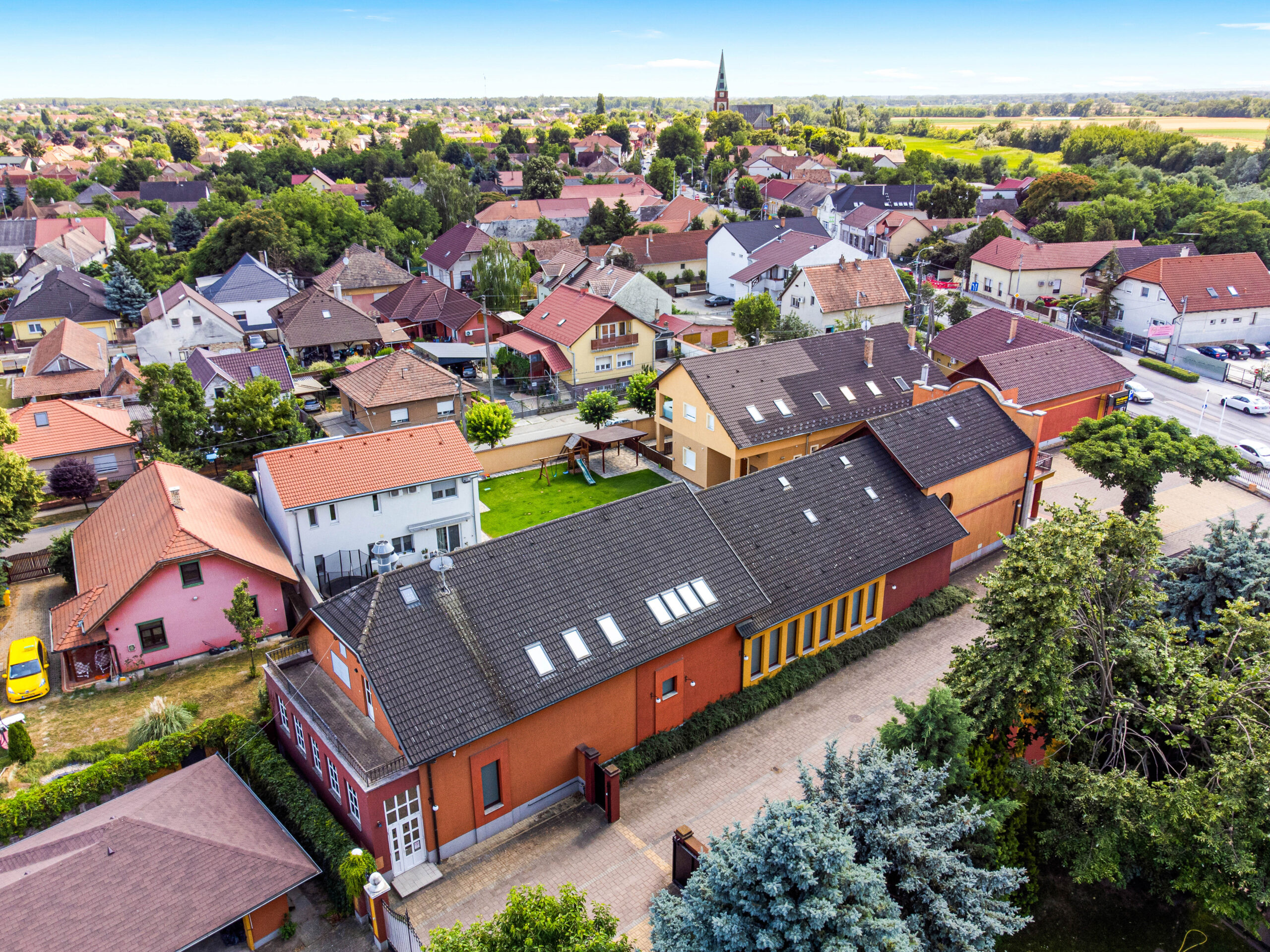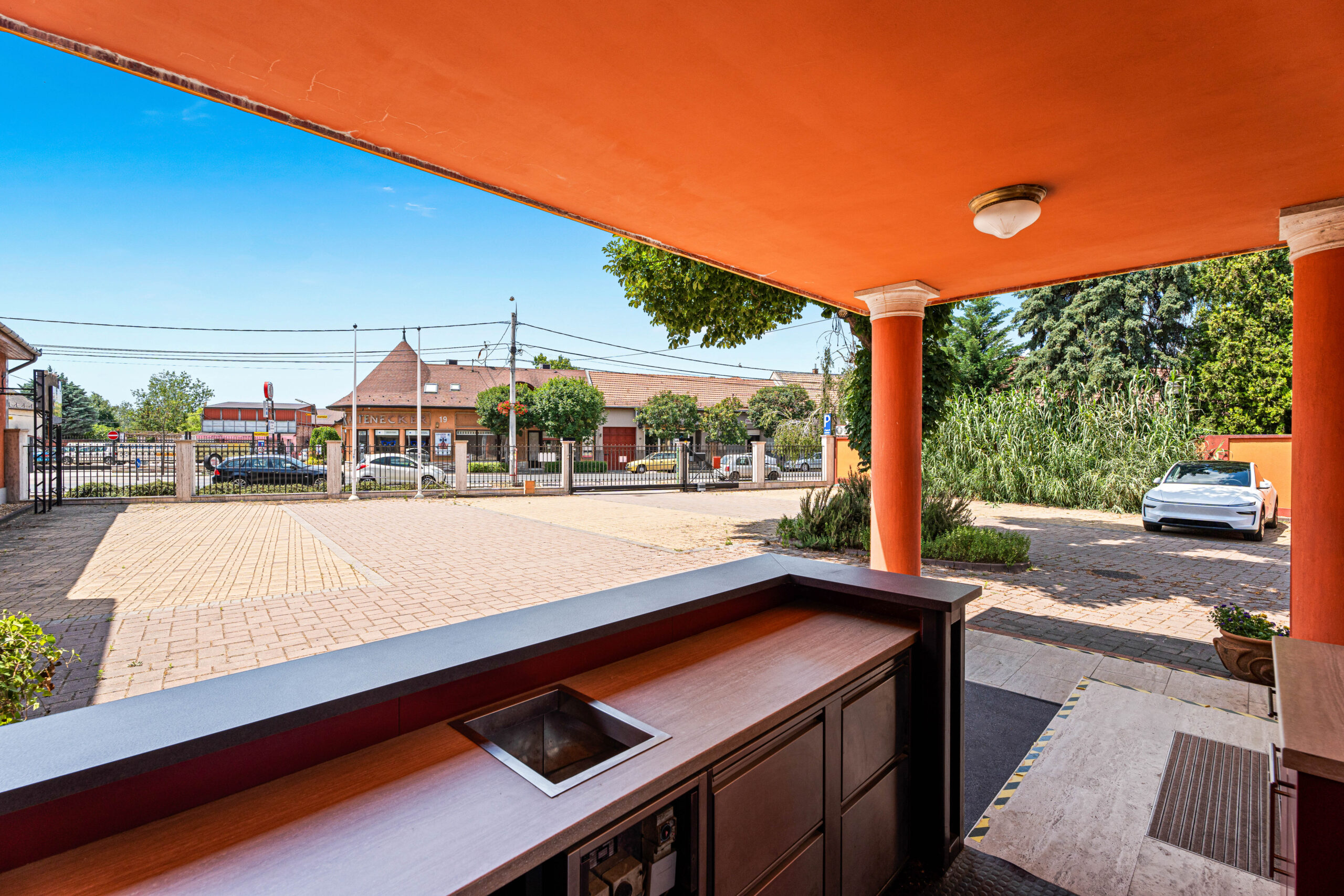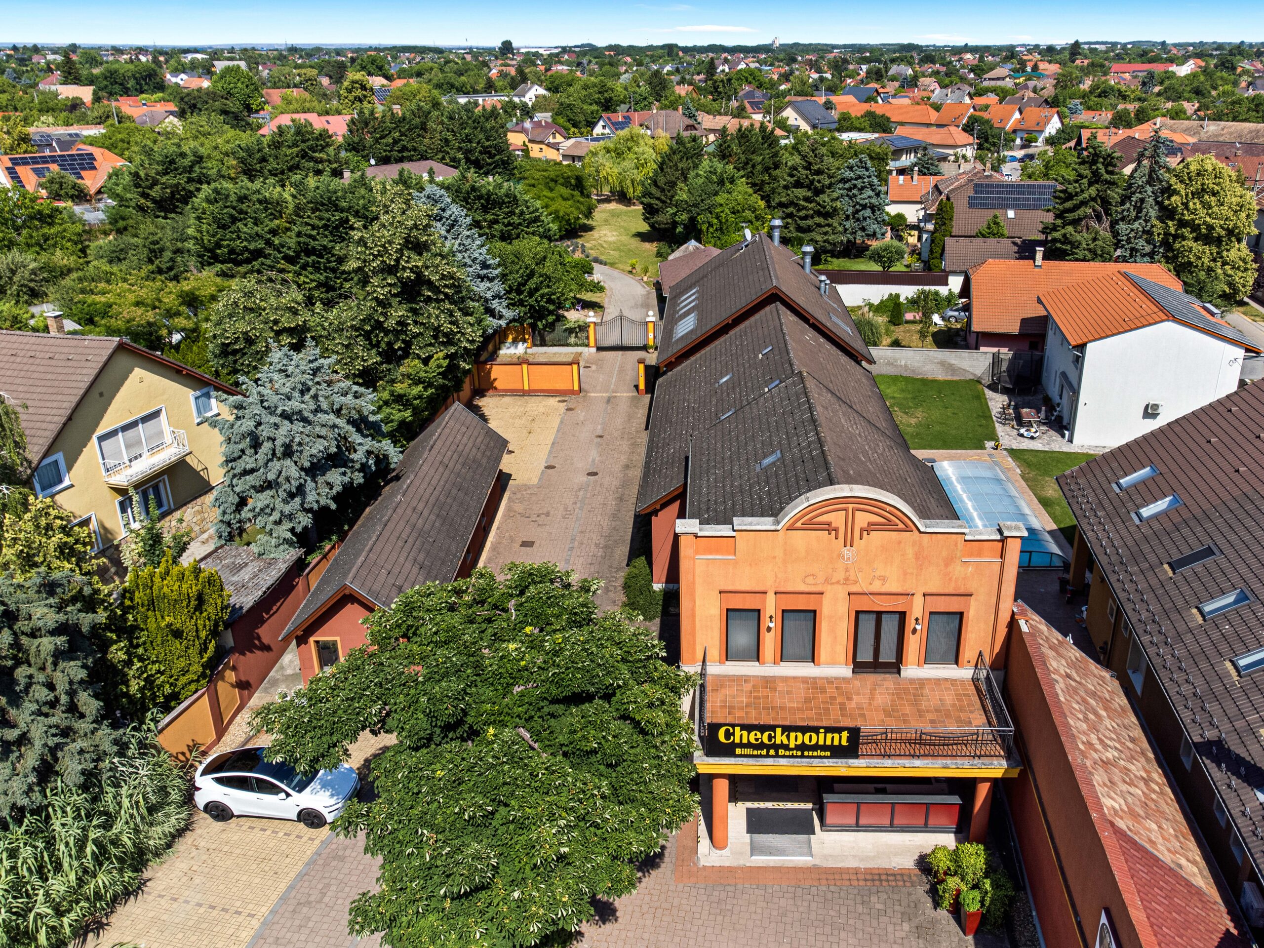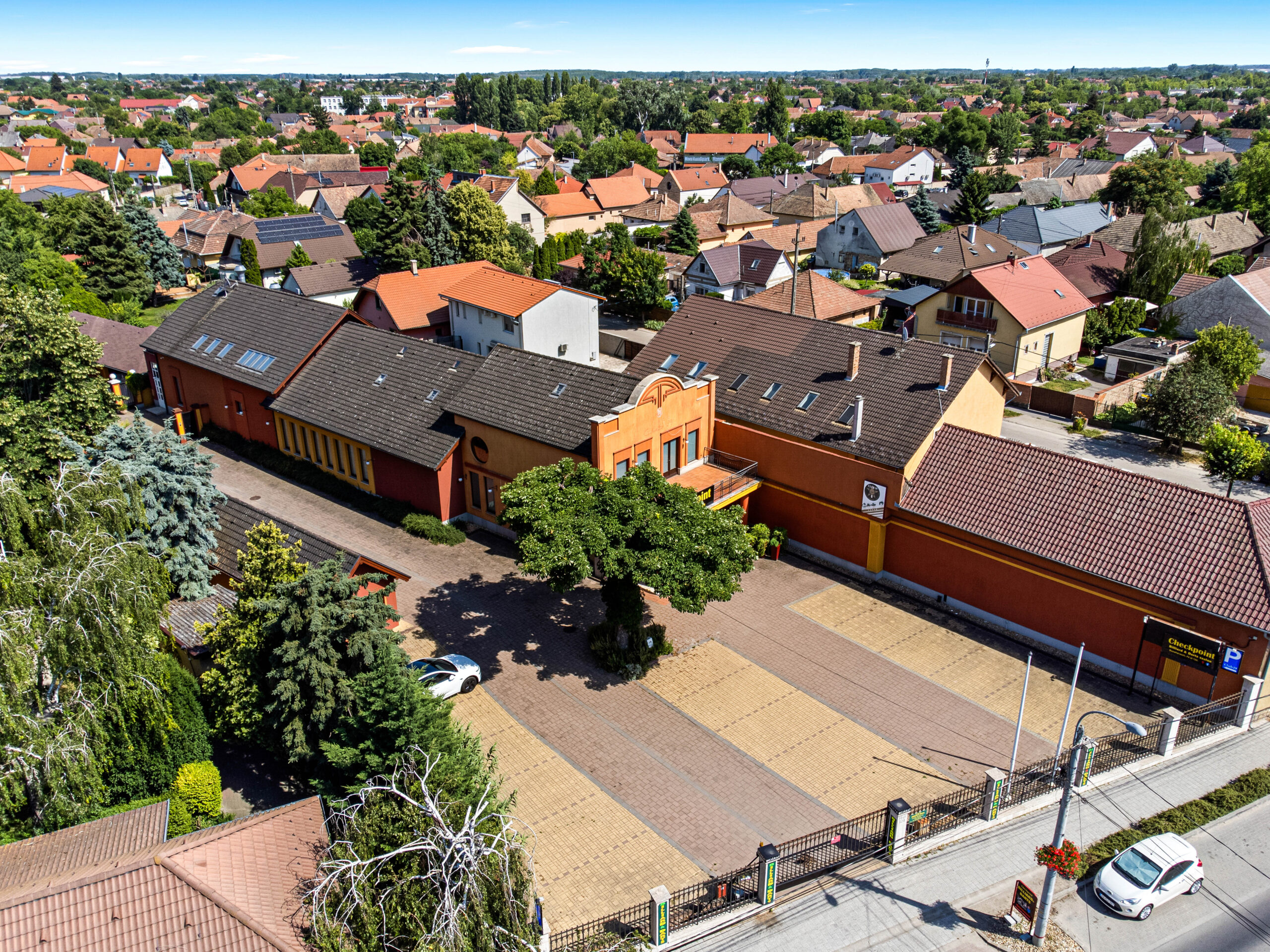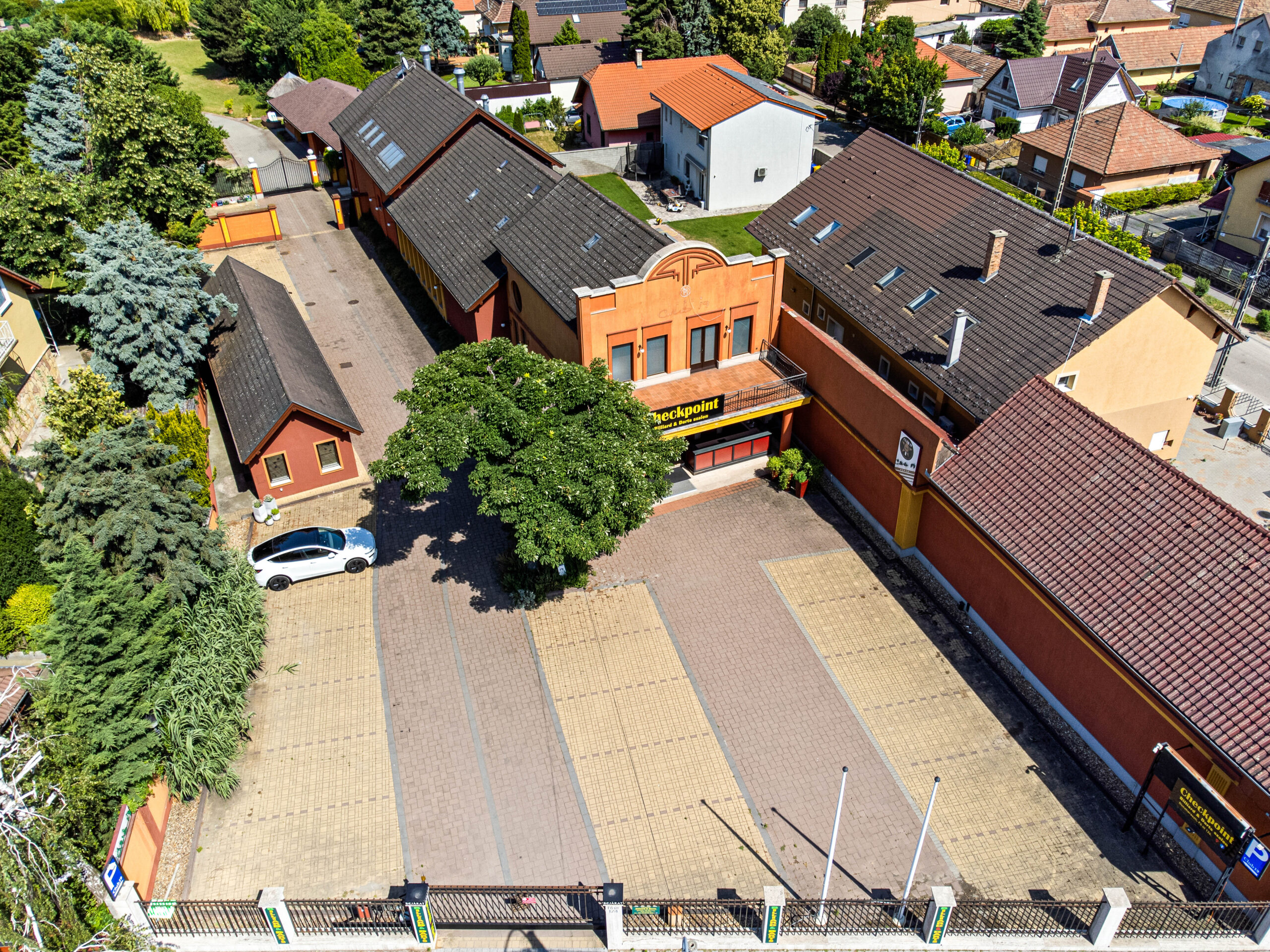 A hozzá tartozó telek 2076m2-ével gondoskodik a megfelelő parkolóhelyek számáról.