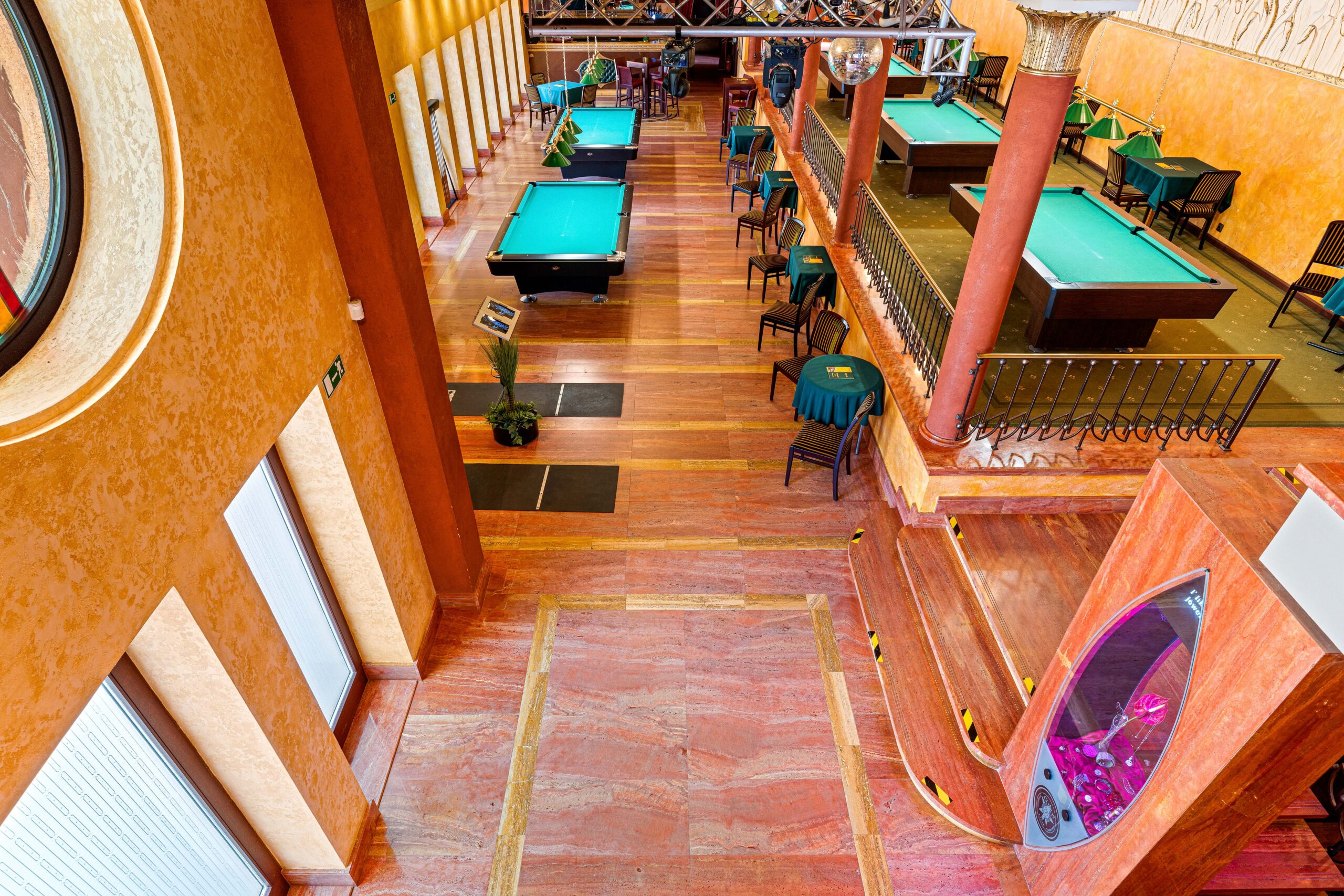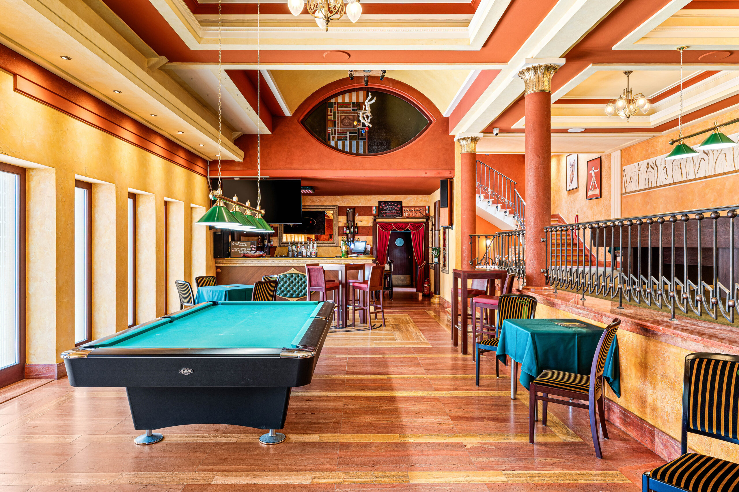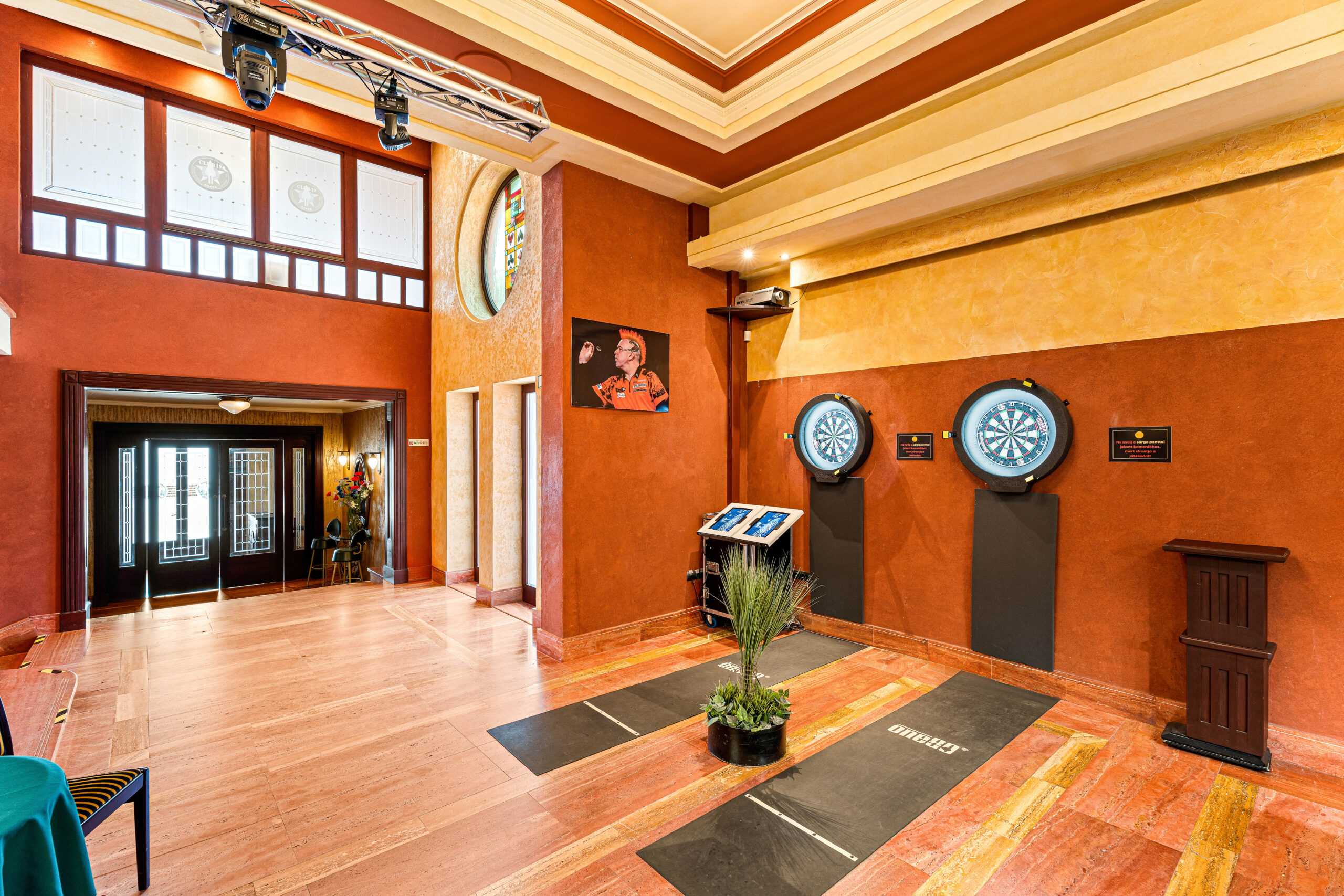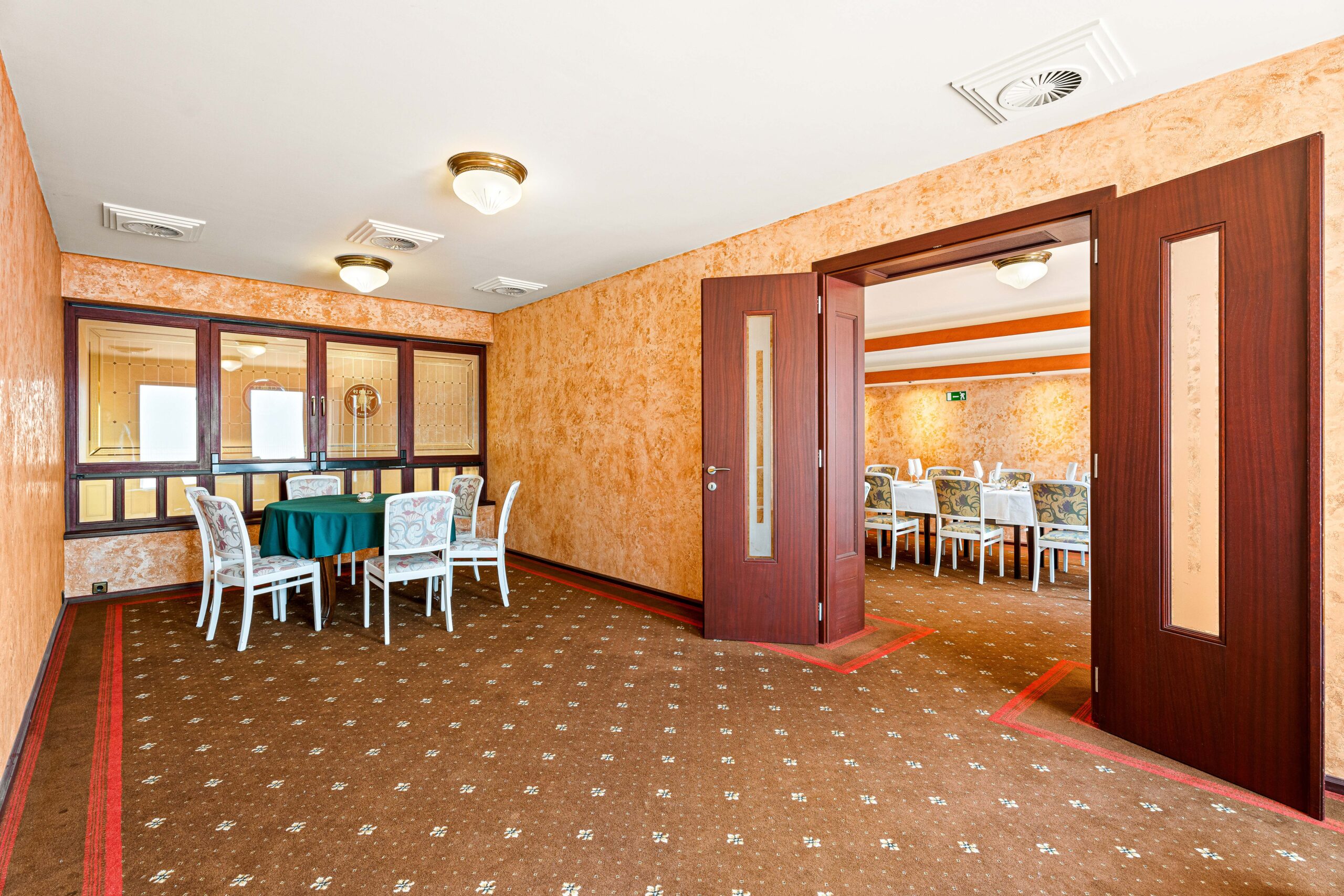 1000m2, amelyben 400m2 feletti vendégtér, mosdók, 100m2es konyha, kiszolgáló helyiségek, személyzeti részegek, tárolok és előkészítő helyiségek is rendelkezésre állnak.
