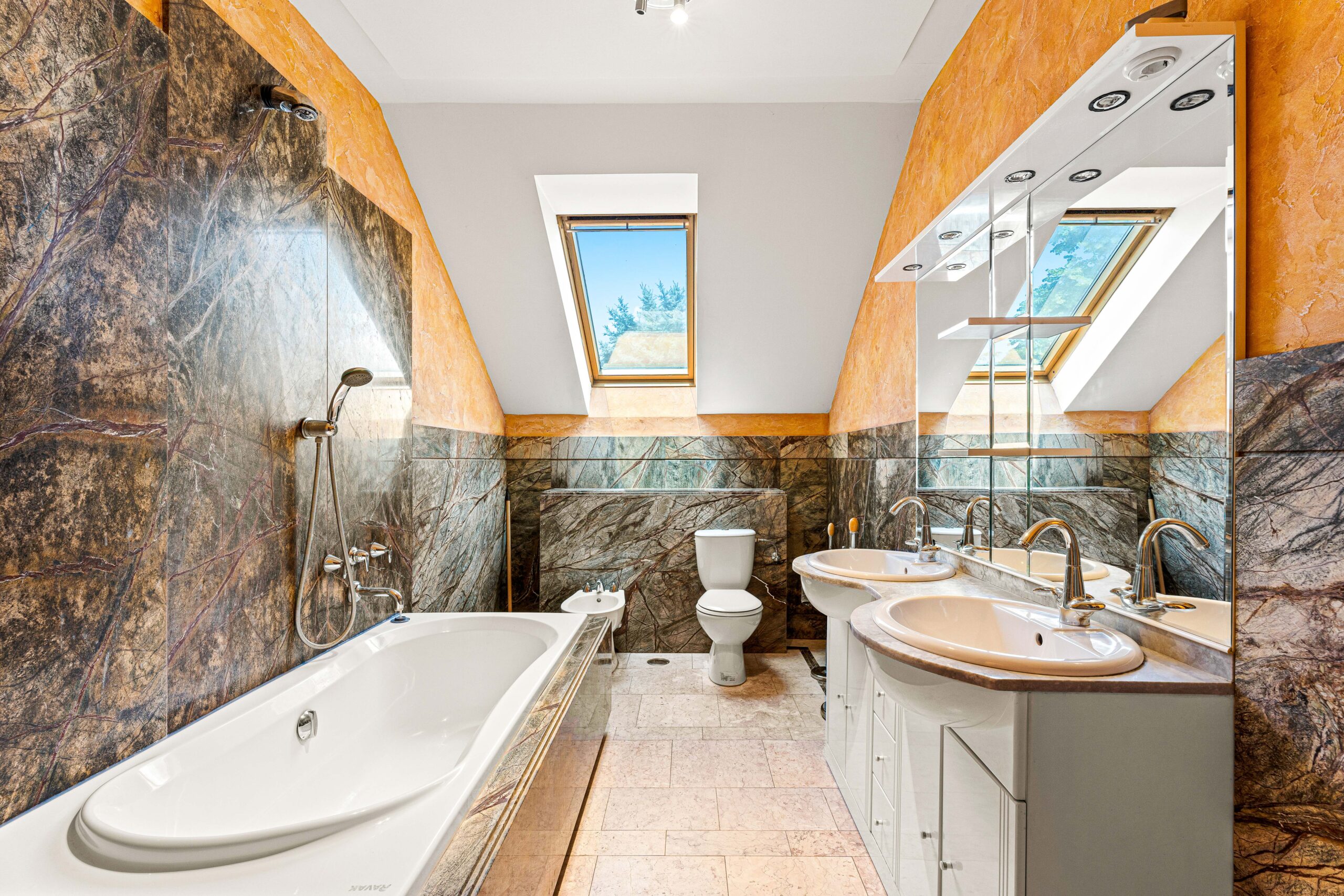 A helyiségek felületeit mindenhol prémium burkolatok jellemzi, ezeken felül külön vezérelhető hang és fénytechnikával is rendelkezik az ingatlan.