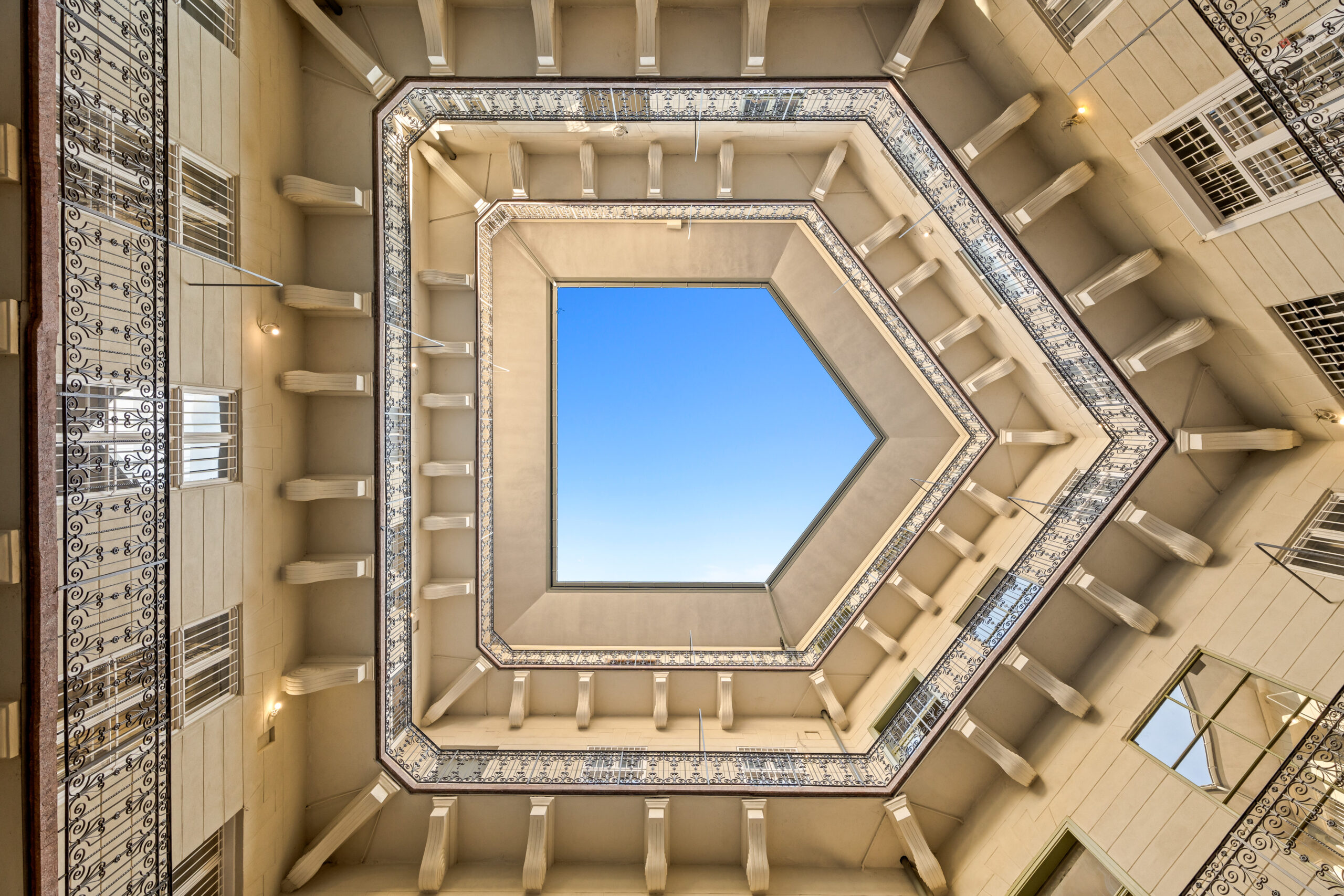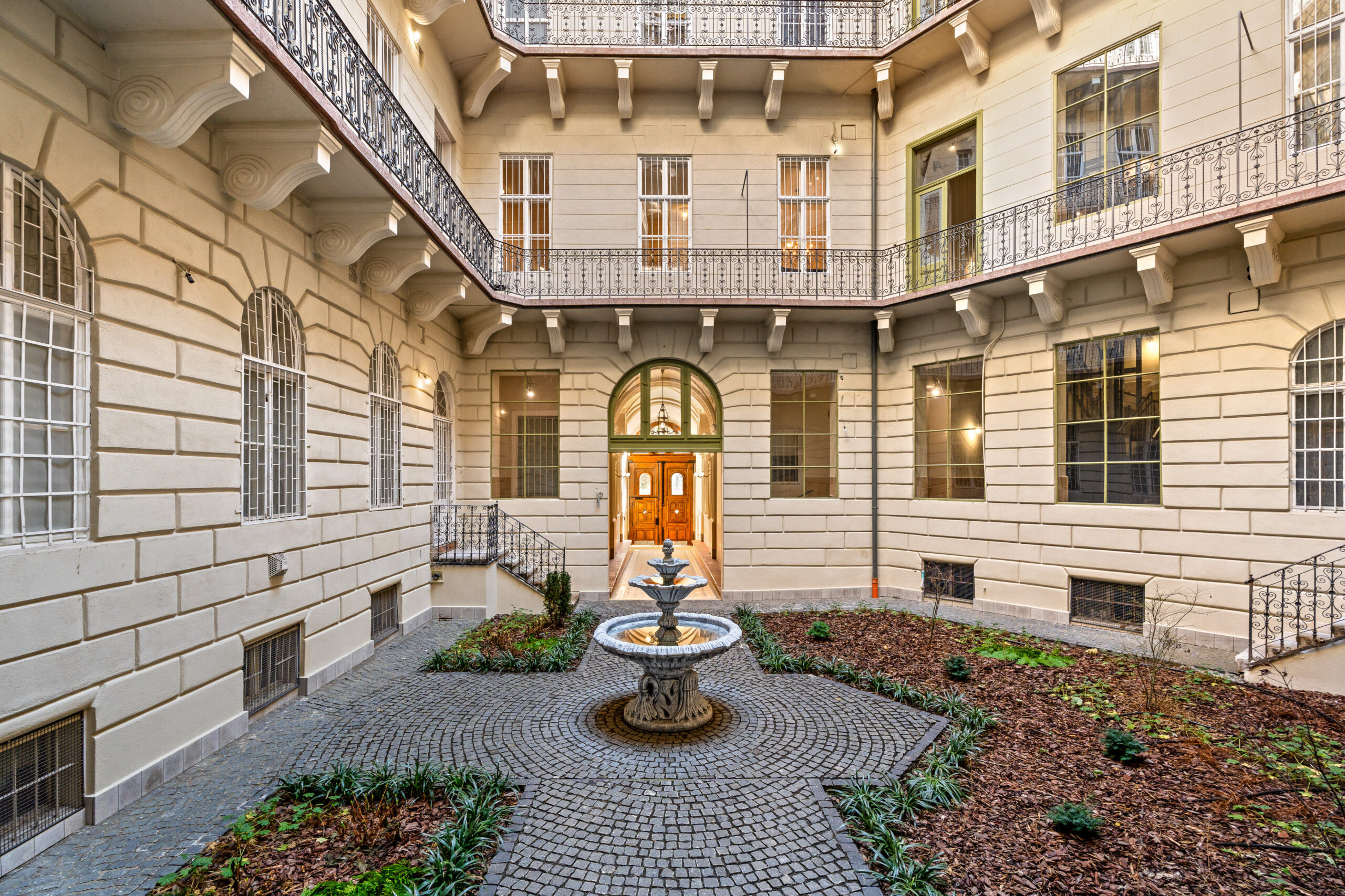 Külső lépcsőházas, gyönyörű belső udvarral